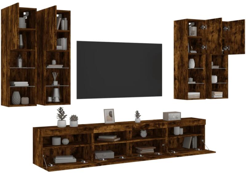 vidaXL 7 darabos füstös tölgy színű fali TV-szekrény szett LED-del